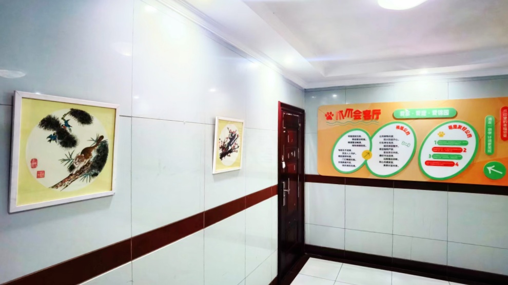中环锦园“爱宠文化楼”在居民自发组织与共同维护下,形成了科学文明养宠、关爱动物、邻里互助、诗艺满楼的良好氛围。在公告栏布置过程中,不同楼层的大朋友和小朋友汇聚在一起共同讨论装饰、展陈方案。在这里还汇聚了“楼楼联动”的智慧,在社区居民的交流互动中,2号楼居民创作的《全民反诈歌》在社区广泛宣传,起到提醒警示作用;26号楼居民捐出自己绘画的国画将楼组装扮得更为靓丽,居民共同制定的《宠物友好公告》也成了楼道共治的文化共识,为营造社区文明氛围贡献智慧和力量。