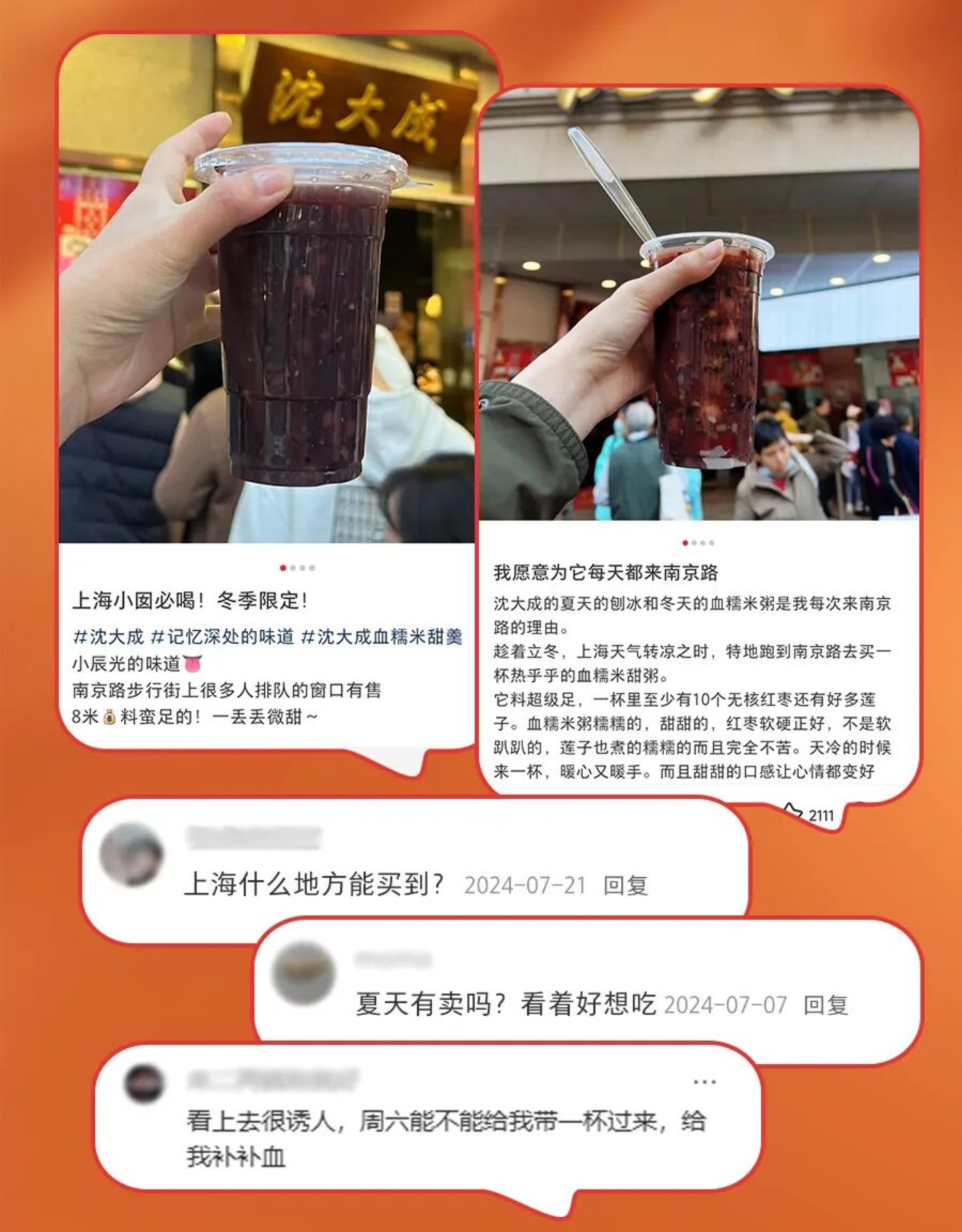 即日起,沈大成血糯米甜羹已在沈大成南京路总店销售,8元一杯,消费者可前往门店品尝这份冬日里的温暖。