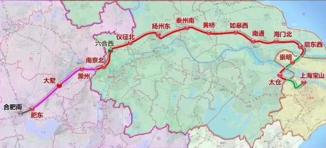 北沿江高铁江苏段是沪渝蓉高铁的东段线路、国家“八纵八横”高速铁路网沿江高铁通道的重要组成部分,承担沿江通道主要路网客流、沿海及京沪通道部分直通上海客流的运输。该项目建成后,在上海大都市圈、南京都市圈和合肥都市圈间建起一条快速新通道,对于优化沿长江地区铁路网布局、服务长江经济带协同发展,推动长三角一体化发展等具有重要意义。