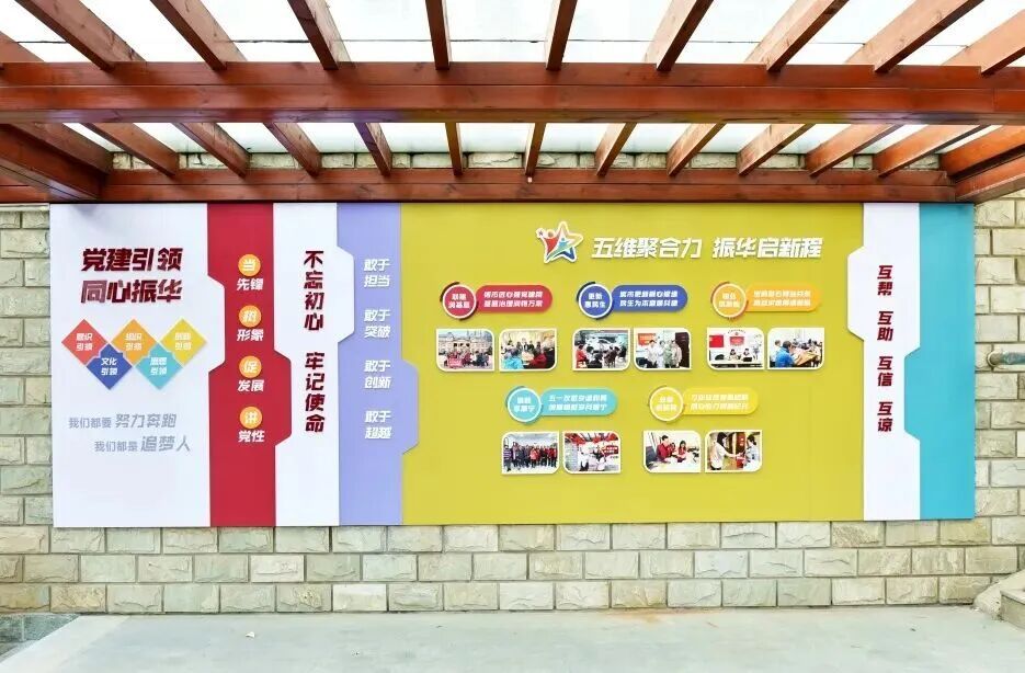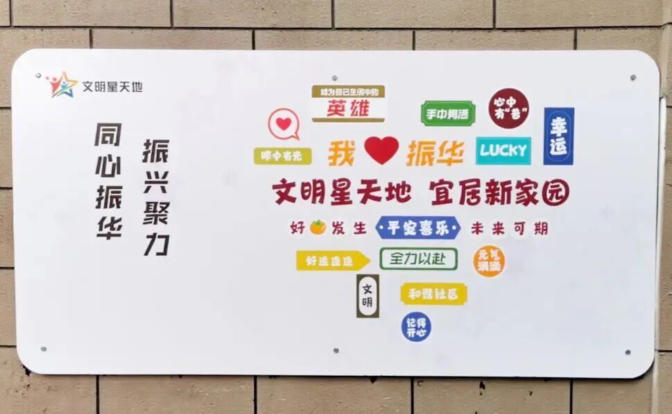 在广场墙面上,清晰展示了振华社区探索总结的“五维”特色工作法。从党建引领到“物业+社区”协同,从聚焦养老到激发自治,这套方法论如同社区的“治理指南”,充分展现了如何将大企业的“匠心”精神与文明实践行动融入老旧小区的精细化治理,让居民对家园的建设脉络一目了然,引导更多居民参与文明社区建设。