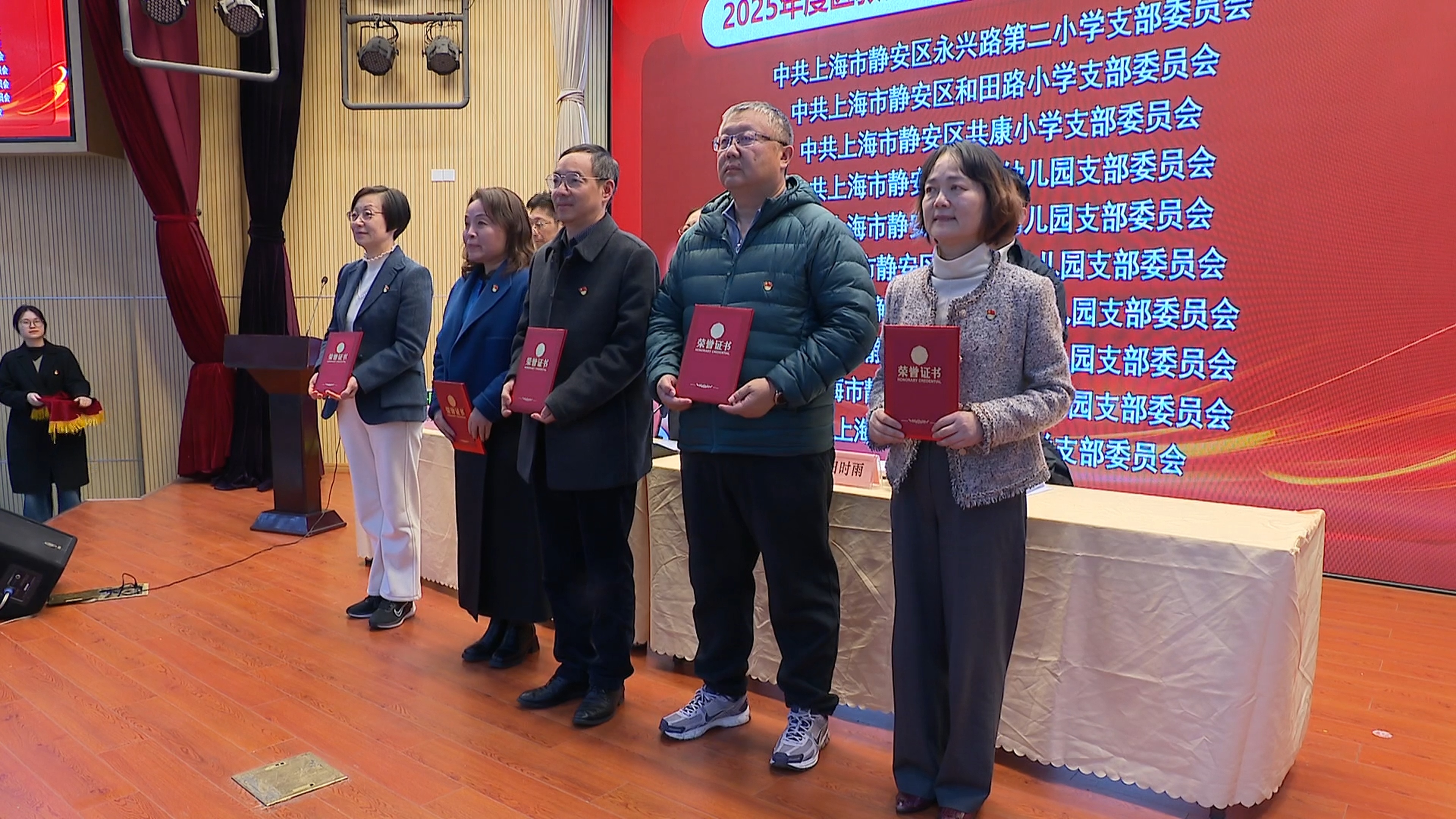 会议为静安区教育系统第四批“党支部建设示范点”、2025年度区教育系统党建创新实验立项项目颁发荣誉证书,以表彰先进、树立标杆,进一步激发基层党组织争优、创新、实干的内生动力。