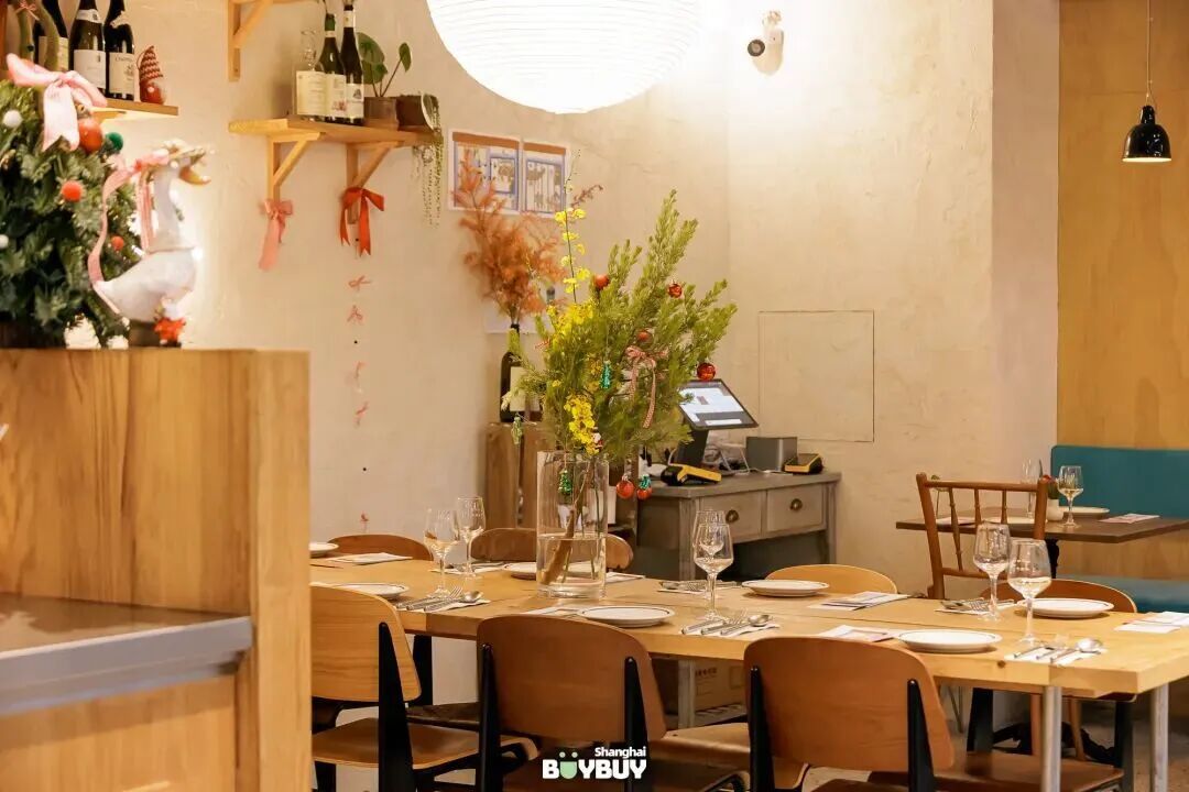 店内的装修也很温馨,每个餐桌上的花束都有所不同。