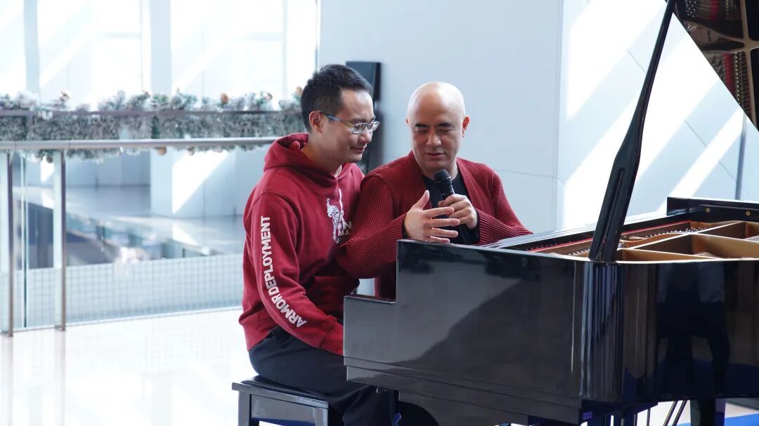 孔祥东在楼宇音乐疗愈活动中与观众互动