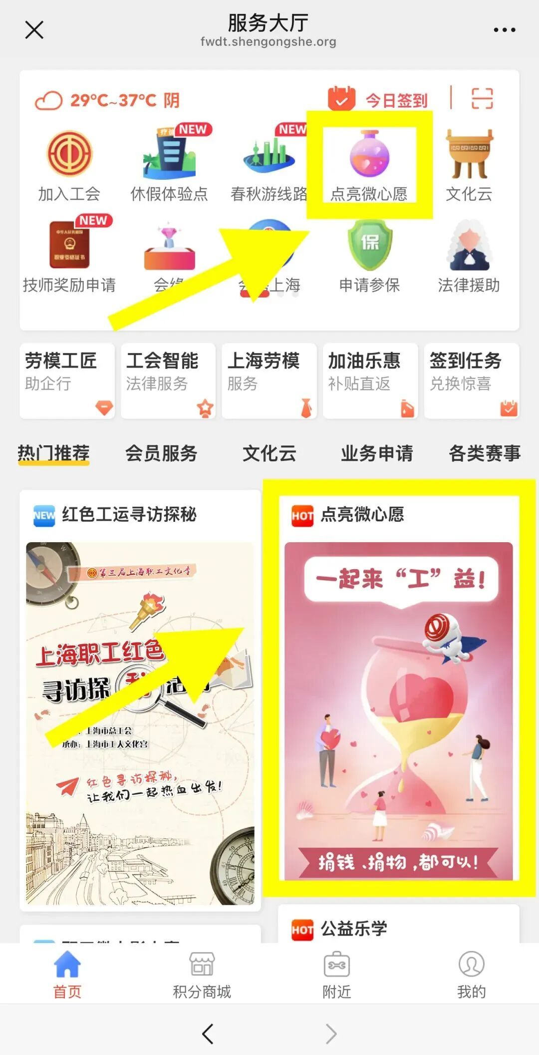 【申工社-服务大厅-点亮微心愿】