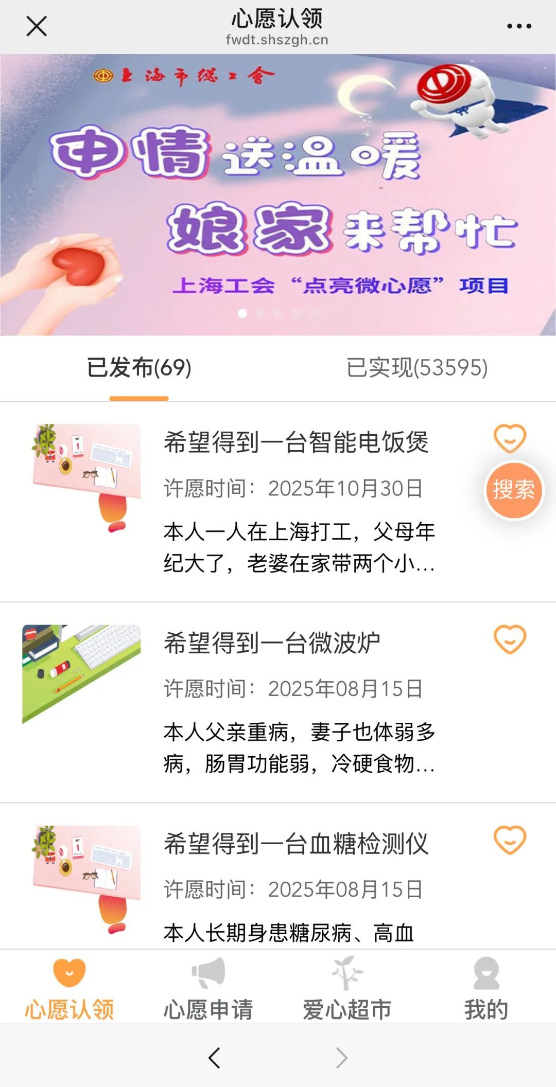 实现本市困难职工的微心愿!