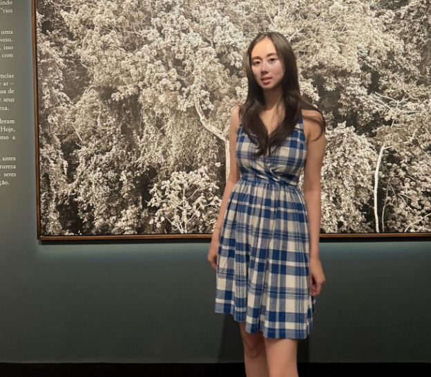 照片中,何超欣穿着蓝白相间的格纹布裙,和来自世界各地的青年朋友们互动交流,一颦一笑尽显美好。她将这组照片发布在了社交媒体上,并配文道:我穿的是崇明土布的“蓝白格·夏有江风”系列——天然棉、环保工艺,轻盈又舒服。不少网友留言点赞,“衣服挺好看的”“土布看起来一点也不土”;也有来自崇明网友的赞叹:“家乡土布登上国际舞台,令人骄傲。”
