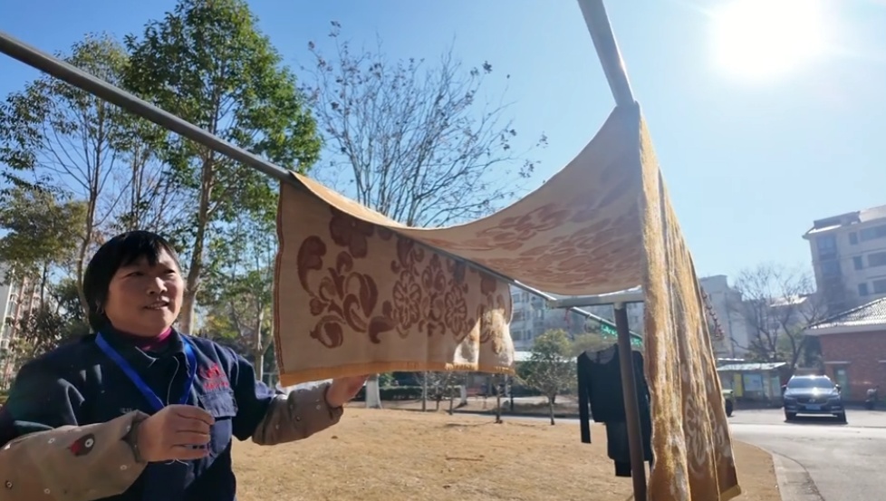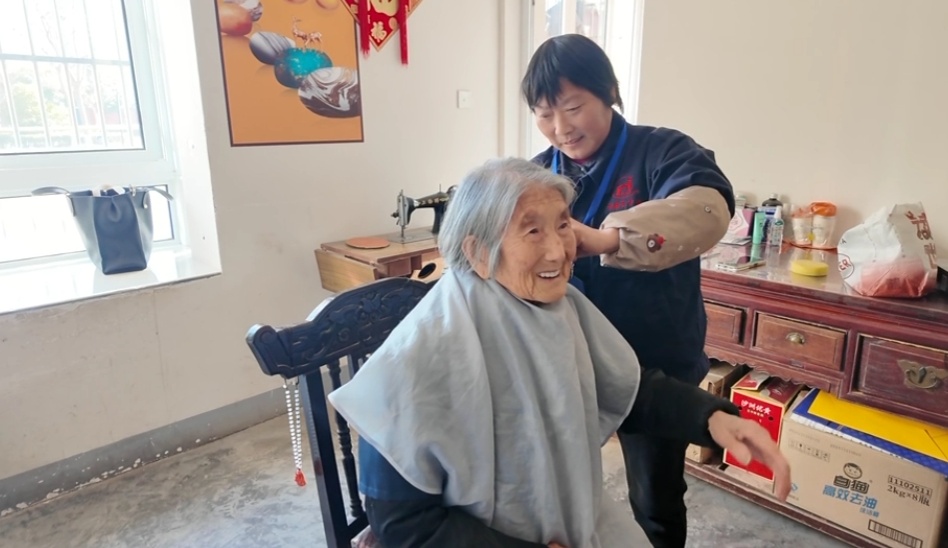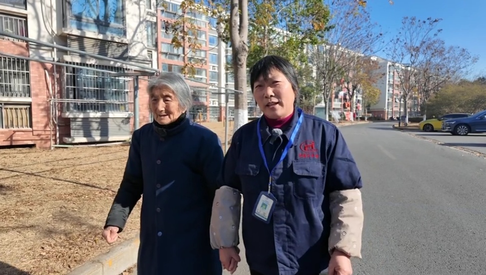 今年94岁的张彩郎是一名独居老人,前段时间不慎摔倒导致髋关节骨折,行动不太方便,尹耀萍时常搀着老人出门活动筋骨。天冷时尹耀萍每隔两三天就会把老人的被子拿出去晾晒,还定期为她理发,让老人在冬日里倍感温暖。“小张把我照顾得很周到,就像我的亲女儿一样亲。”张彩郎老人高兴地说。