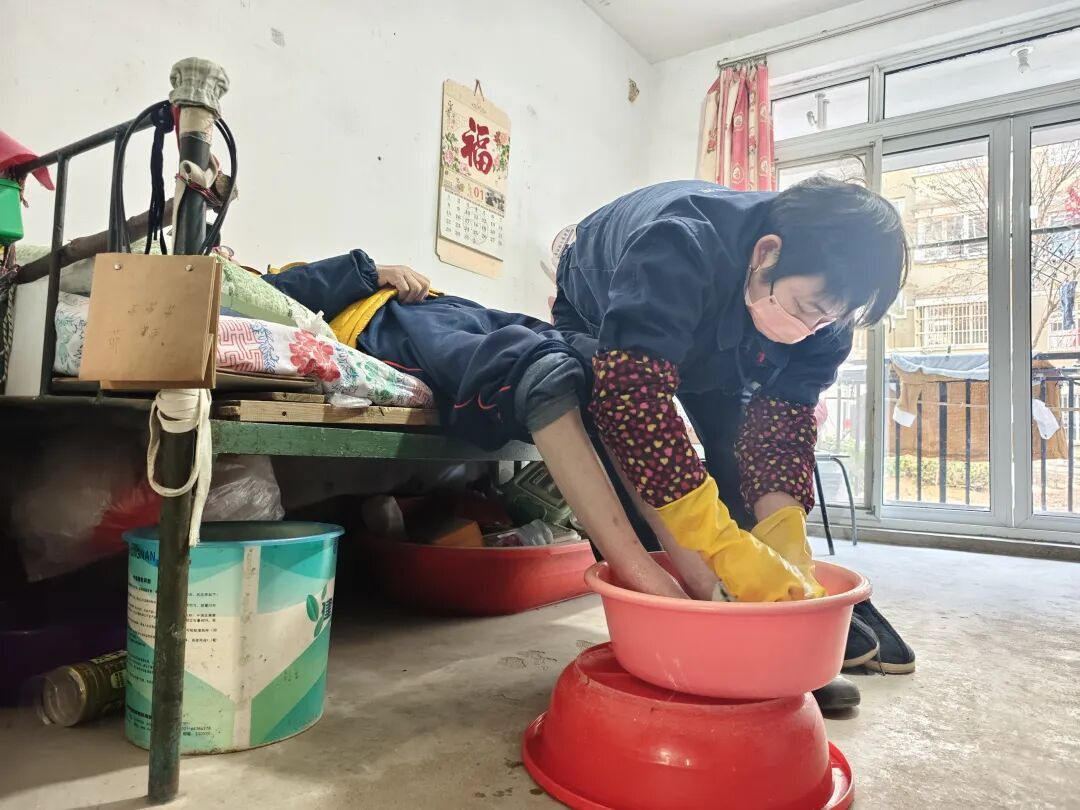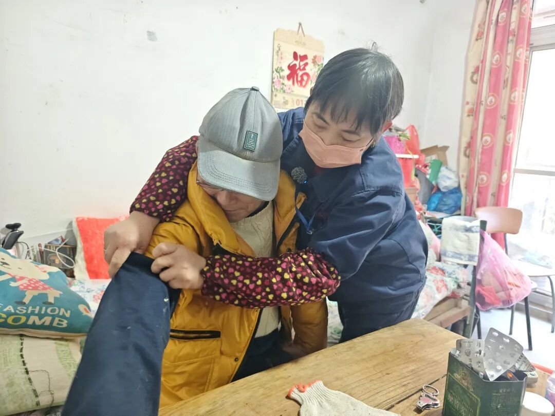 据了解,柏老伯是一名重残人员,因幼时患病导致下肢活动不便,大小便偶尔失禁。杨菊总是耐心为他清理身体,冬天还常常为他泡脚驱寒。天气干燥时,她也不忘给老人涂抹润肤露。五年多的陪伴照护,柏新法暖在心里。