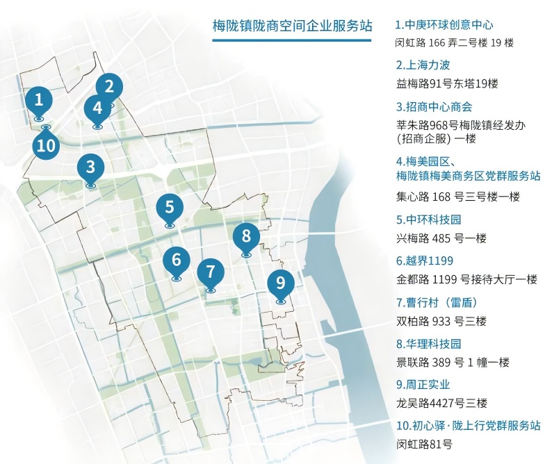 为打通服务“最后一公里”,梅陇镇在重点园区与楼宇布局10个“陇商空间”,构筑平均1公里一个枢纽的“1公里服务圈”。
