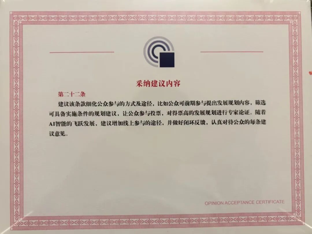 提交建议后,祝前广本未抱太高期望,没想到数周后就收到了反馈——部分建议被正式采纳。“原来‘人人可参与立法’绝不是一句空话!”这个结果让他深受触动。截至目前,他通过全程参与浦锦街道立法征集工作,累计为8部法规草案提交27条建议。