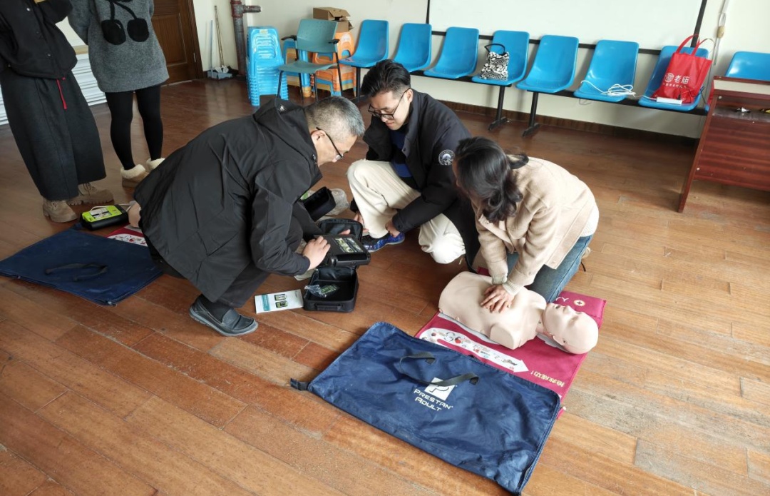 2025年下半年以来,四团镇累计开展AED使用培训8场、应急演练1场,吸引400余人次参加,现场通过理论知识宣讲、模拟操作、案例分析等方式多维强化参与者对心肺复苏、AED使用等的掌握程度。