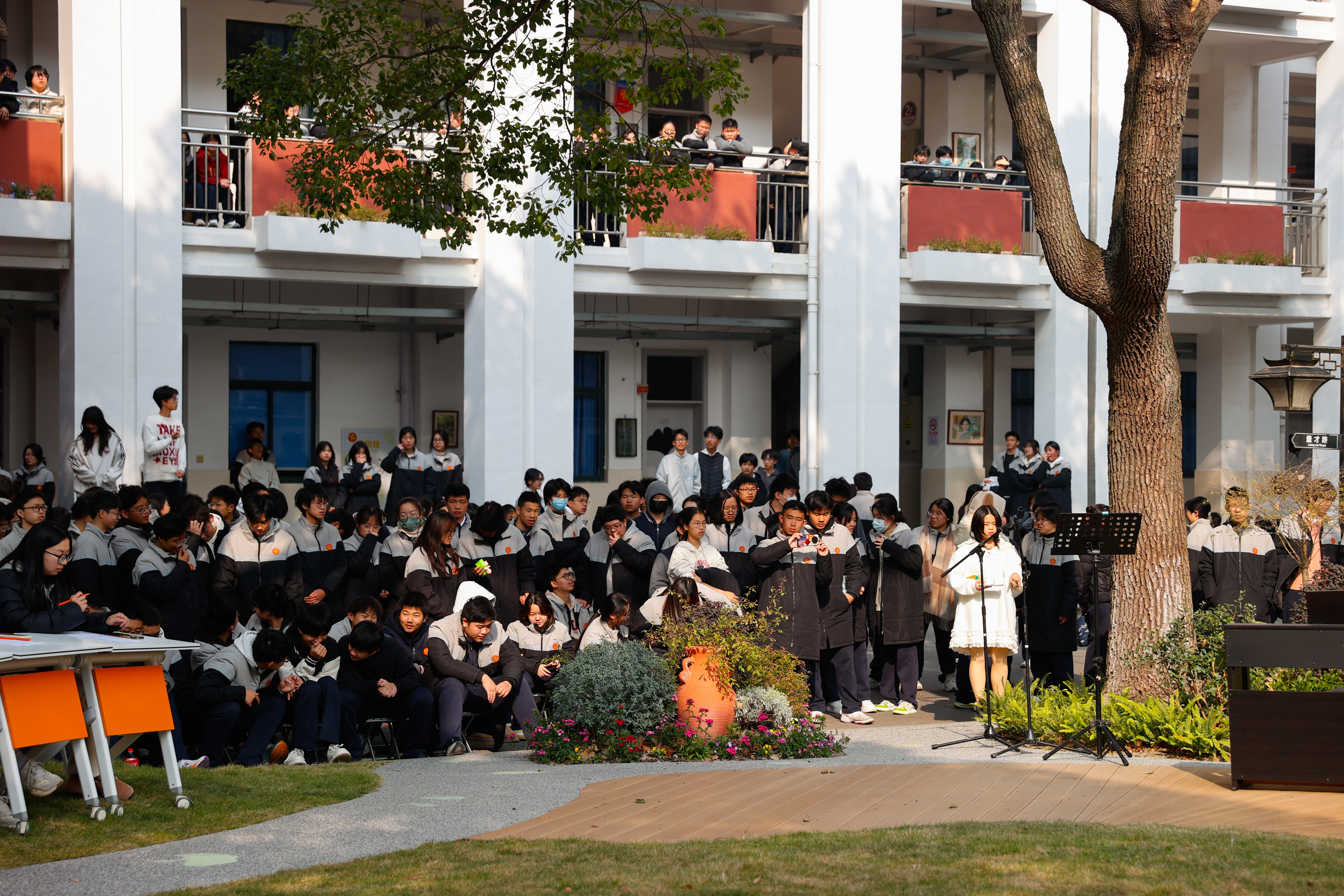 “长亭外,古道边,芳草碧连天。”12月17日中午,一场以“千年诗韵,一树金声”为主题的诗词吟唱活动在松江四中校园内温情上演。
