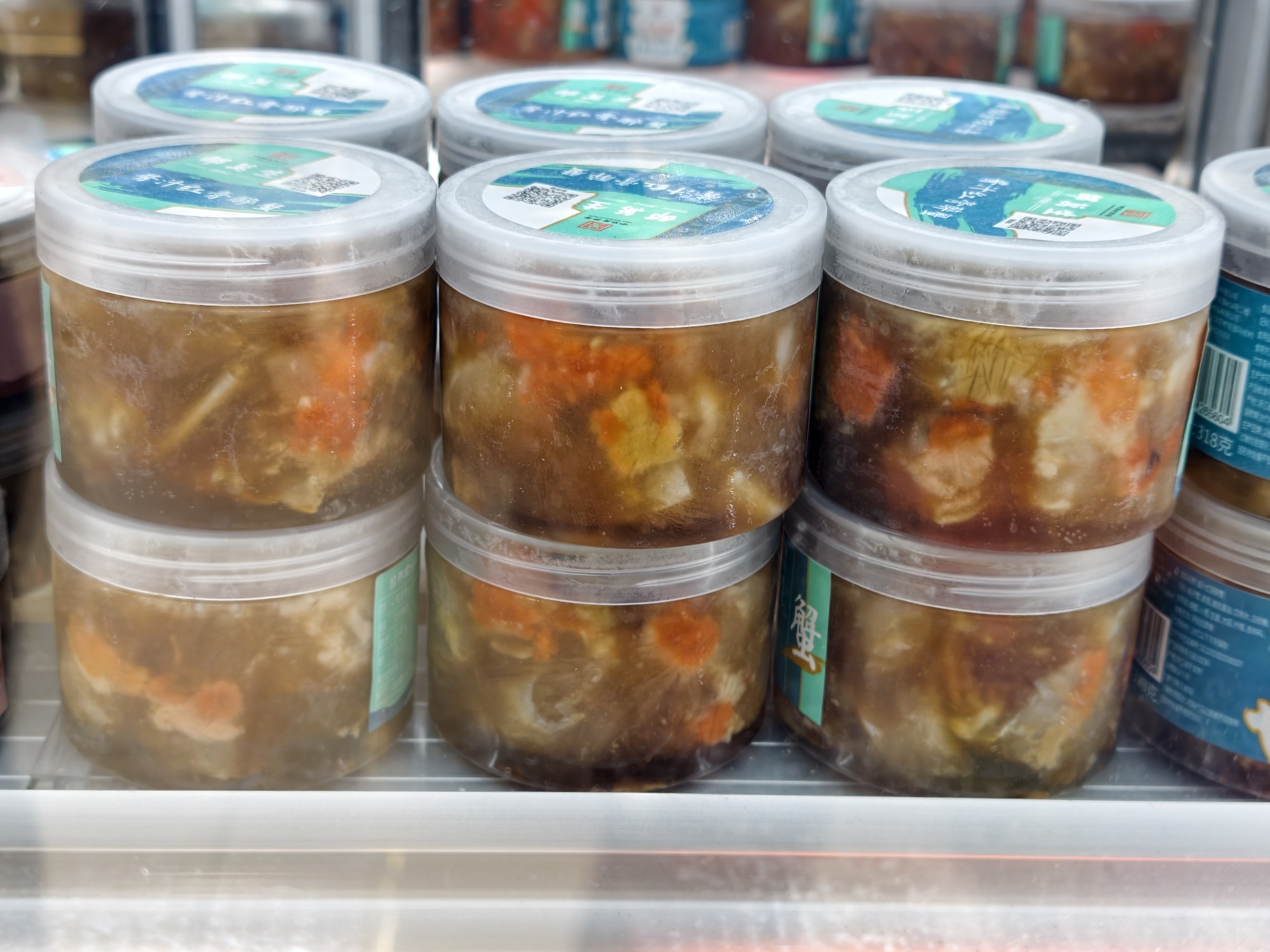 值得一提的是,两款新品尤为亮眼,成为消费者争相选购的热门单品。生酱汁红膏醉蟹严选半斤左右的带膏梭子蟹,经短暂速冻斩块,最大程度保持蟹肉紧致结构。以黄酒、酱油为基底,搭配姜末、蒜末、葱、食盐、蜂蜜、白砂糖、柠檬汁及多种香辛料调和出酸、甜、咸、鲜的复合风味。短时间腌制锁住食材本味,蟹肉凝如琥珀,膏黄呈半流动状,入口冰凉滑嫩、弹牙不腥,尽显邵万生糟醉工艺的精湛水准。该单品还荣获2025上海伴手礼称号。