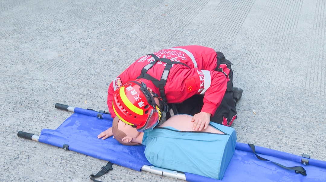 另一旁,早已就位的救援人员立即上前,对“伤员”进行伤口处理、吸氧等应急救护,随后转运至医院进一步“治疗”。