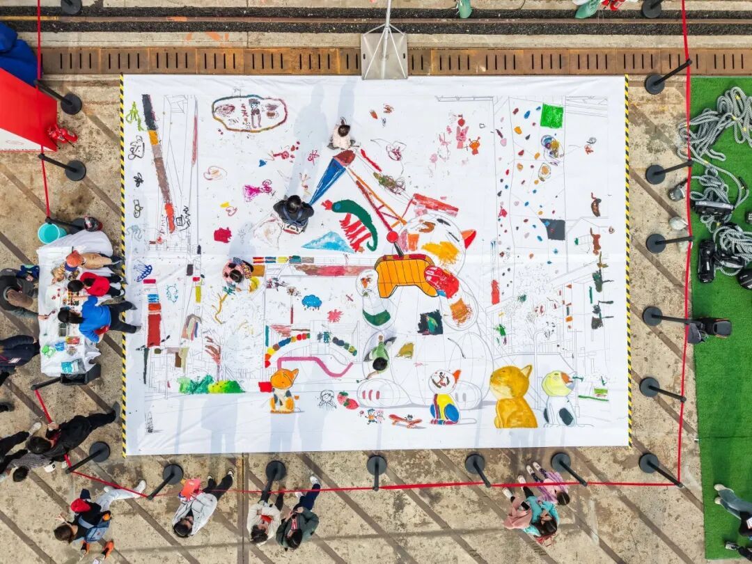邀请市民用色彩与创意共绘城市文化画卷,让每个人的笔触都成为大型公共艺术的一部分。从复兴岛的标志性塔吊与艺术装置,到即兴绘制的各种萌物,市民在画布上留下自己的印记与创意,共同构成了这一幅复兴岛上的活力绘卷。