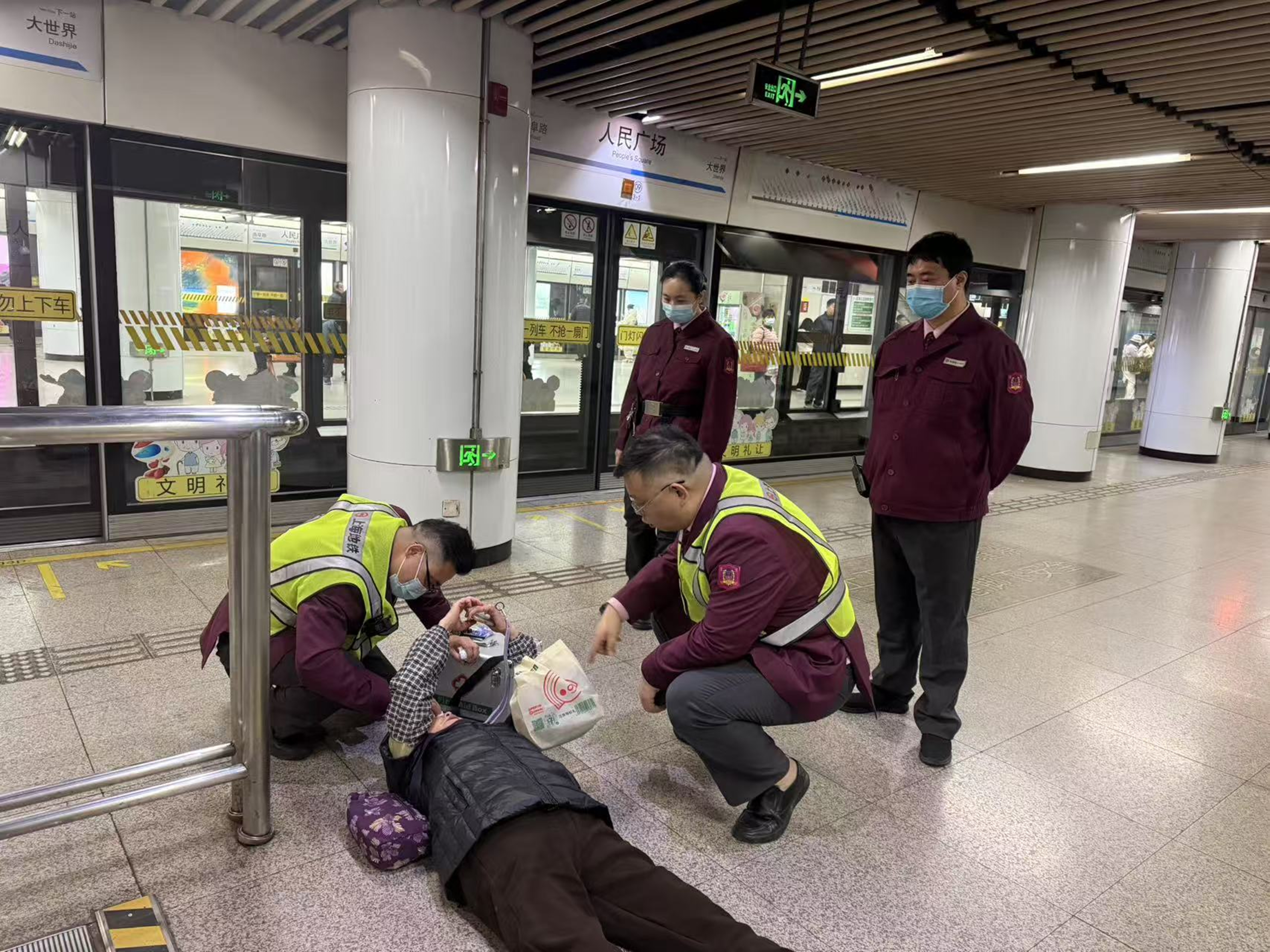12月21日下午,上海地铁人民广场站内上演了一幕温暖人心的场景,一名乘客在乘坐自动扶梯时不慎摔倒,车站工作人员迅速行动、专业救助,为寒冷的冬日增添了一抹温情。