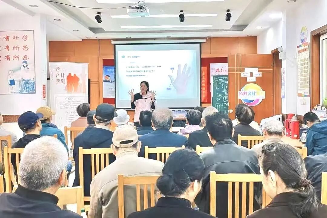 此外,中心还联动多方资源,努力拓展服务领域:链接科技企业开展长者智能技术培训,帮助老年人掌握手机打车、视频通话等技能;携手杨浦区四平老龄事业发展促进会举办老年兴趣班,开设书法、手工编织等课程;依托“十助同行・乐享夕阳”养老服务公益市集,整合理发修面、扦脚护理、辅具指导等“微服务”资源,将贴心关怀集中送到老年人身边。