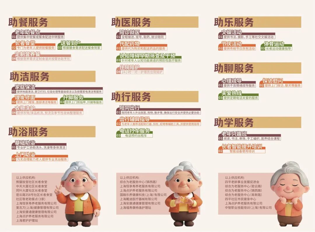一张清单:畅通居家养老服务供需路径 作为居家养老服务的枢纽站,四平路街道居家养老服务中心对原有的助餐、助浴、助医、助乐等十大类服务进行系统梳理,精心编制完成“四平路街道居家养老服务清单”,以精准对接老年人多元化生活需求。