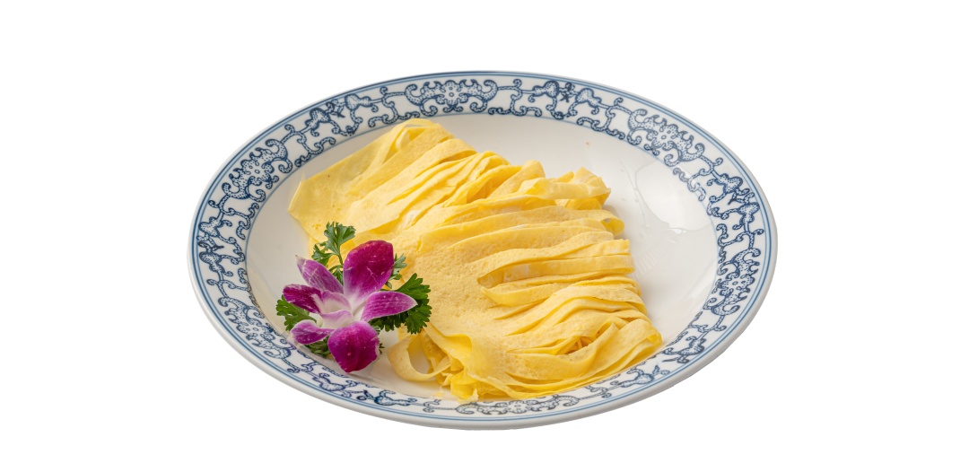土鸡蛋烙成金黄喷香的蛋皮,切作匀称细丝,入口酥脆与柔韧交织,蛋香浓郁,是记忆中难忘的农家味道。