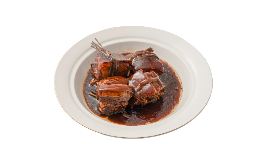 文火慢焖至外皮“八成酥”的绝佳状态,胶质半融,软韧相宜。最后以中火收汁,自然形成晶莹亮泽的“自来芡”,入口酥糯不腻,酱香醇厚。