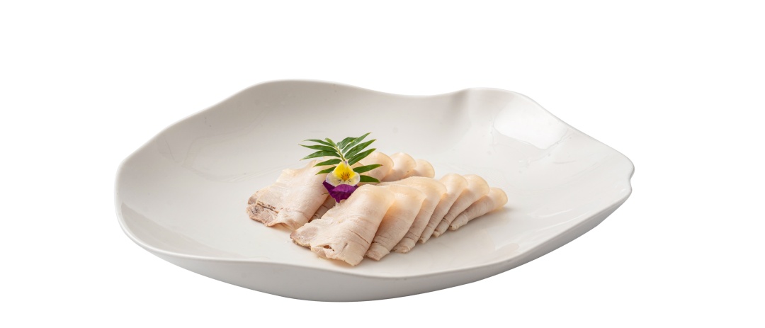 看似简单,却见功夫。五花肉文火慢浸,原汤浸泡,凉透后切出薄而莹润的肉片。肥腴剔透,瘦处酥润,蘸上酱料,方显本真。