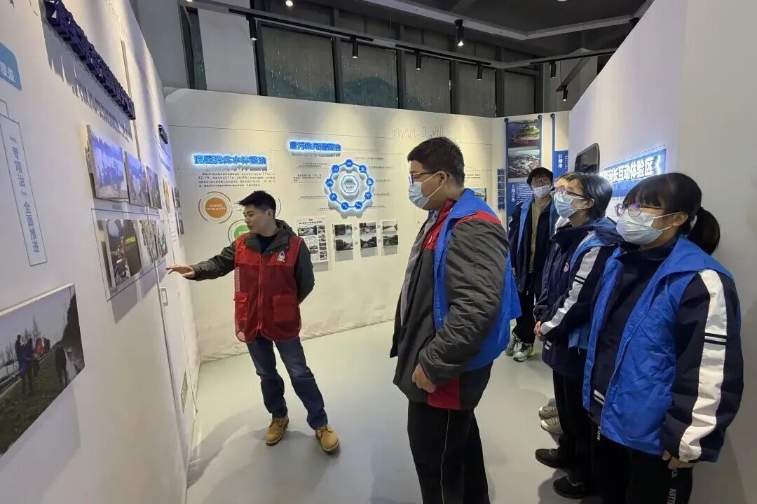 在奉贤区水环境管理事务中心清澜爱水护水志愿者的陪同讲解下,同学们先参观了河情展示厅。通过聆听奉贤河道、水闸的变迁历史、治水历程与保护措施,同学们对家乡的水系脉络和水环境治理有了更清晰的认知,也对水务工作有了初步了解。