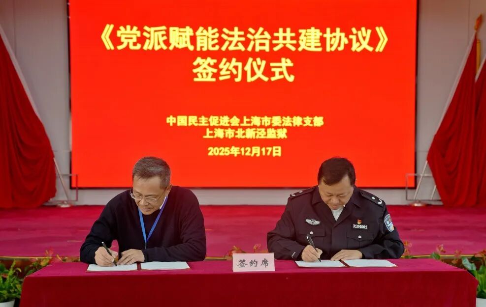 为深入推进法治监狱建设,充分整合社会资源赋能教育改造工作,近日,北新泾监狱与中国民主促进会上海市委员会法律支部举行《党派赋能法治共建协议》签约仪式。