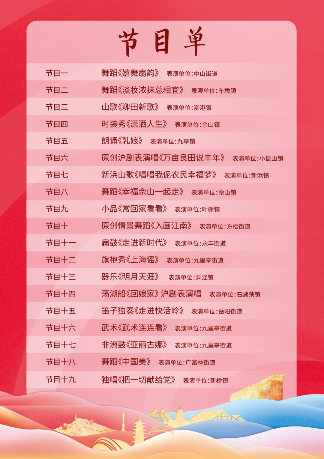 本场复赛将邀请4位评委现场打分,最终比赛结果将结合12月20日首场复赛的赛况综合评定。两场复赛将角逐出一等奖2个、二等奖6个、三等奖12个。获奖名单将于本月底在“上海松江”微信公众号上公布,获奖节目将有机会登上2026年松江区社区春晚的最终舞台。