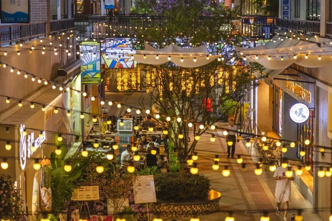 繁荣夜间消费市场,延长消费时段,打造沉浸式夜购、夜食、夜游、夜娱场景。西云楼文化休闲街区的“马上有喜市”及“元宵盛会”,强化夜间灯光布景、乐队驻唱、巡游表演,打造海派夜生活地标。嘉亭荟、中信泰富万达广场等商场开展文娱演出,如音乐会、微醺派对等;同时影院、健身房等业态延长营业时间,提供夜间服务。