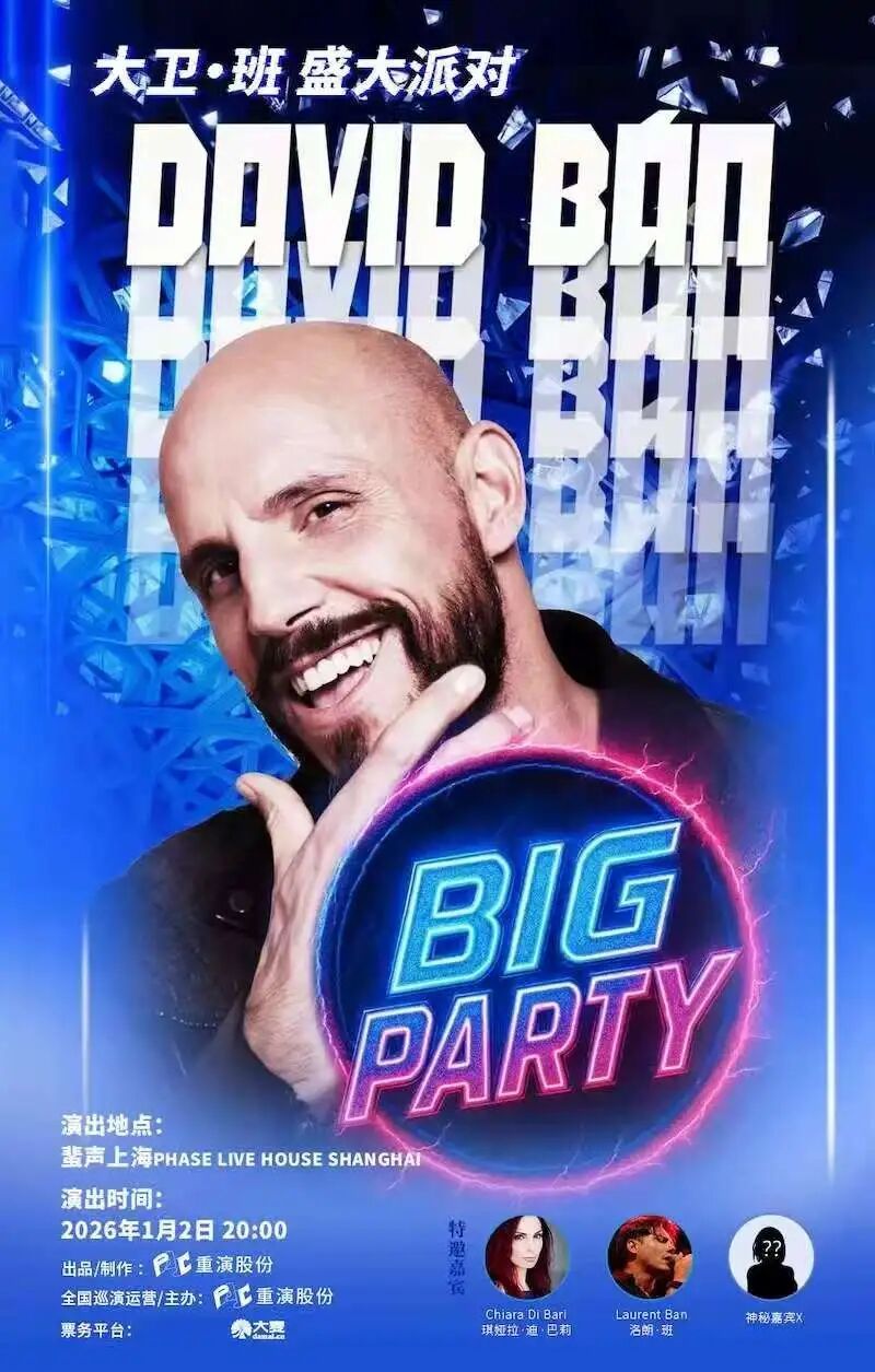 法国音乐剧演员大卫·班(David Bán)携个人音乐会《盛大派对》空降上海,用一场颠覆传统的音乐狂欢,陪你开启2026。