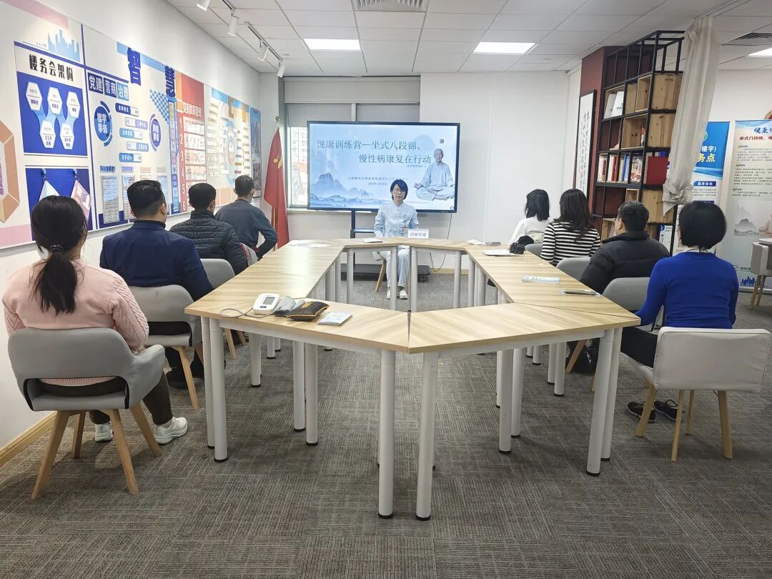 更令人眼前一亮的是互动环节——在专业人员的带领下,十余名白领跟随舒缓音乐,现场学练“坐式八段锦”。这套源自传统的养生功法,特别适配办公室场景,短短十几分钟,不少参与者已感受到颈肩放松、心神宁静。据悉,坐式八段锦不仅能改善职场人常见的肩颈腰背不适,还可调节呼吸、缓解焦虑、提升专注力,可谓“工位上的健康小助手”。