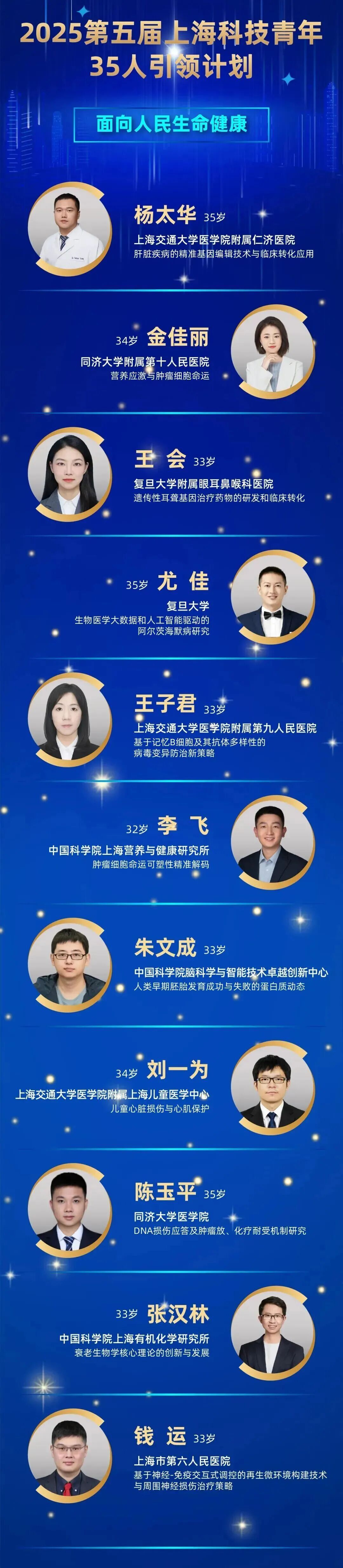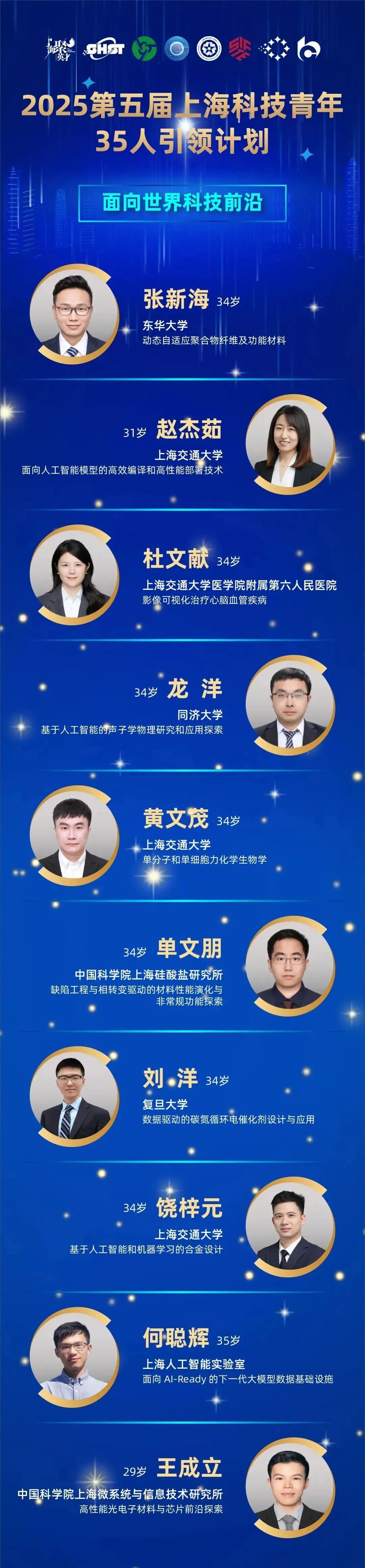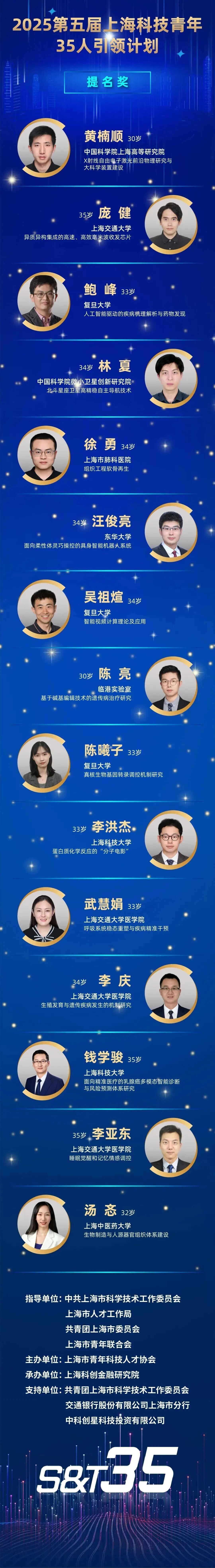 “上海科技青年35人引领计划”始终致力于构建开放、包容、前瞻的青年科技人才评价体系,为上海建设具有全球影响力的科技创新中心注入青春动能。本届获奖者将继续以创新为舟、以实干为桨,在强国征程中书写新时代的科技答卷。