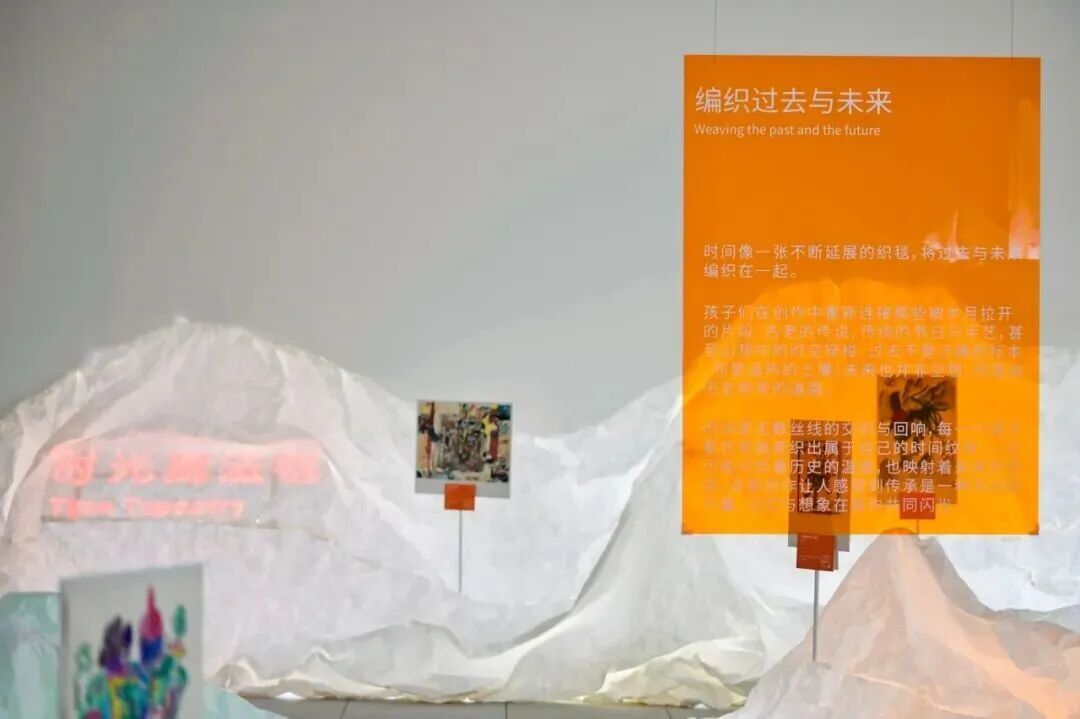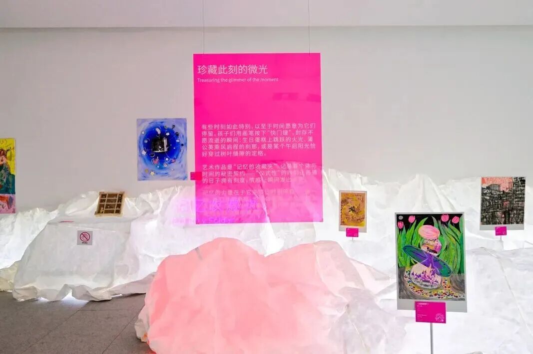 展厅中,“时间的花园”、“时光魔法毯”、“未来观测站”、“记忆收藏夹”四个充满童话感的主题,精心呈现小艺术家们充满童真的作品,邀请不同年龄段的观众们来到这里,静静聆听孩子们用创意诉说的时空故事。