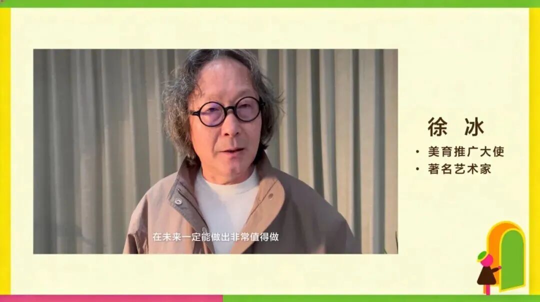 浦东美术馆美育推广大使、国际著名艺术家徐冰老师也通过视频,与孩子们分享了他的艺术感悟。他特别强调保护孩子们天生的感知力与想象力的重要性,鼓励孩子们保持对艺术的热爱、探索无限可能。