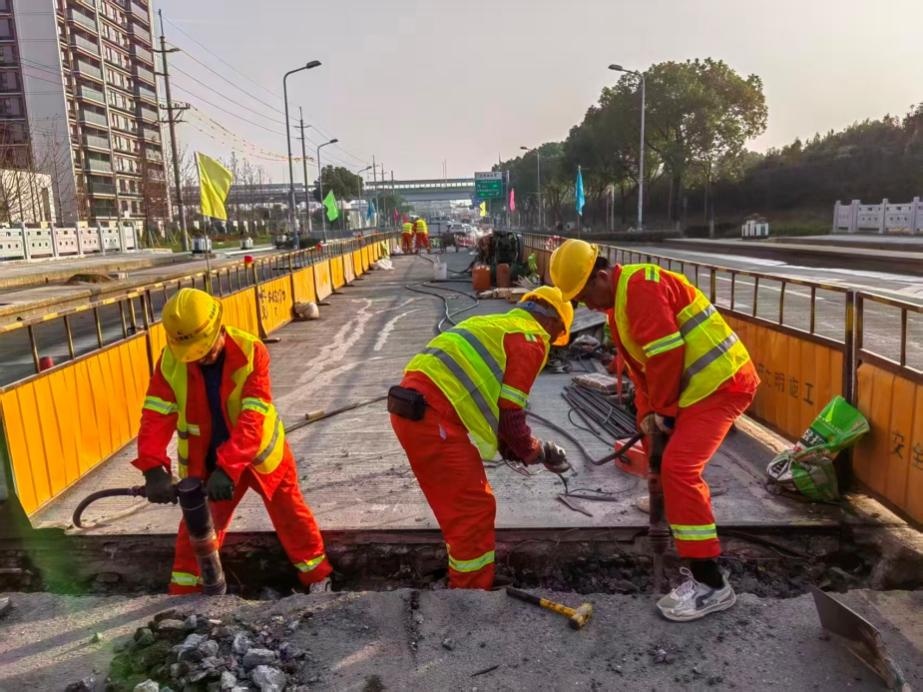 据了解,这三座桥梁因长期服役,陆续出现了铰缝渗水、桥面铺装产生裂缝等问题,影响桥梁整体结构安全与通行性能。“连接桥梁各板梁的铰缝就像人体的‘关节’,承担着传递荷载、协调受力的关键作用,”闵行区交通设施管理中心相关负责人介绍,“本次工程重点就是对这些受损‘关节’进行彻底修复。”