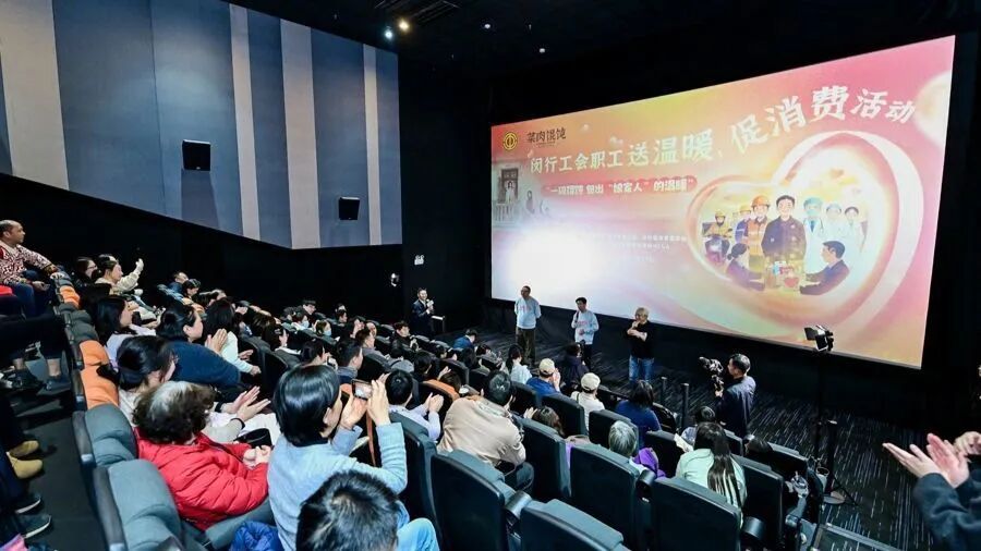 看完电影《菜肉馄饨》,闵行职工能凭电影票根吃一碗菜肉馄饨,还能在商场里的“闵工惠”幸福集市快闪区逛一逛…… 近日,由闵行区总工会与区商务委员会联合主办的“闵行工会职工送温暖、促消费活动”暨职工主题观影活动在上海虹桥前湾印象城MEGA举行,区内劳模工匠、新就业形态劳动者、各行业一线职工等300余人参与。