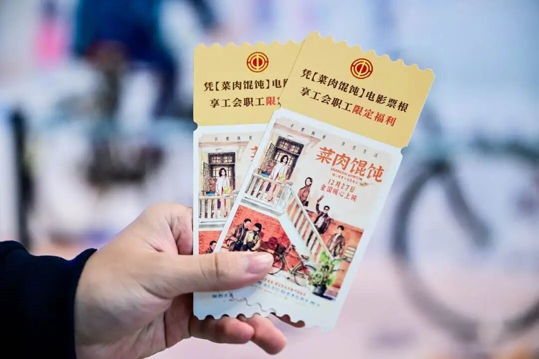 “新开业的商圈很热闹,我准备带着家人在商场里逛逛。”看完了电影,上海市劳动模范郑良拿着票根,正打算去吃一碗菜肉馄饨。据介绍,本场观影活动还顺应了“票根经济”等消费新趋势,现场观影的职工凭当日电影票根,可至指定商户免费兑换“菜肉馄饨”一份,享受“观影惠享”系列福利。