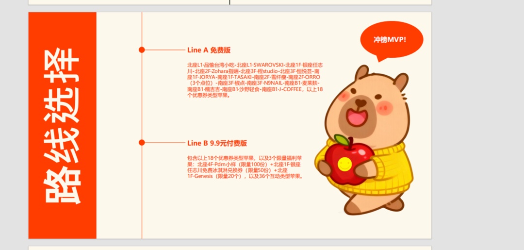 商场推出沉浸式虚实寻宝游戏“APPLE CRUSH”,玩家通过手机在商场寻找“出逃的苹果”触发交互。游戏设双模式:Line A免费休闲路线可获商户优惠;Line B花费9.9元深度挑战路线含隐藏任务及智慧值排名,优胜者赢联名好礼。游戏于12月24日至2026年1月18日开放,解锁数字探索乐趣。