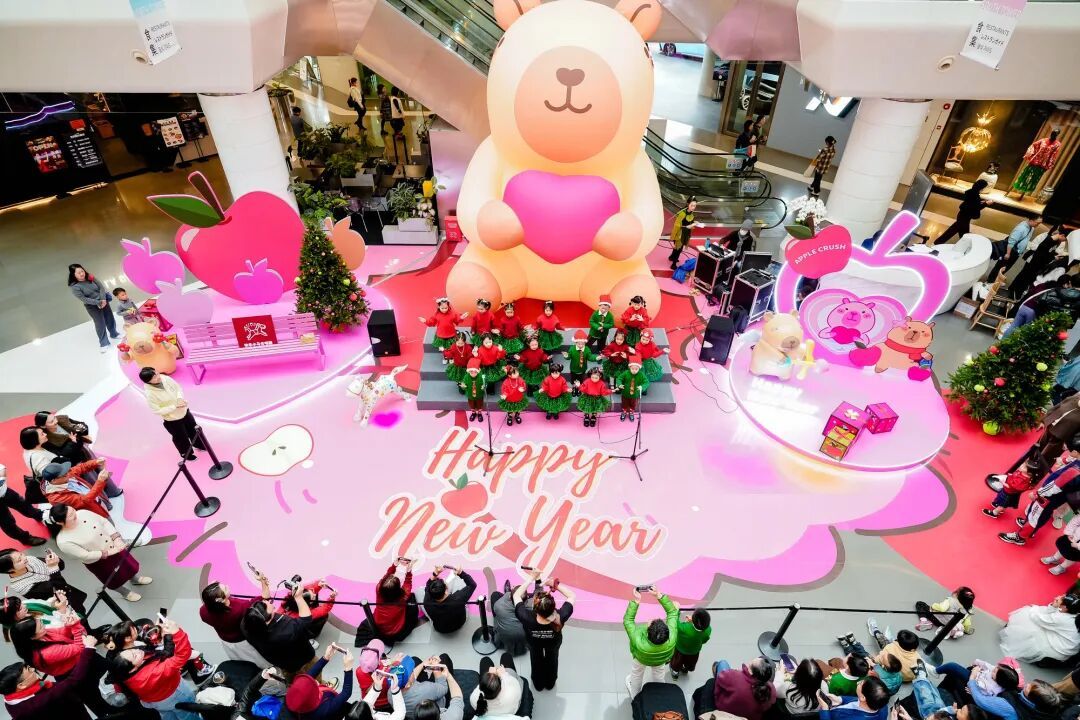 社交网络“情绪稳定大师”卡皮巴拉皮皮豚登陆,开启“皮皮豚 Apple Crush奇趣季”主题展。南座中庭巨型抱心皮皮豚装置搭配礼物与暖光,烘托节日暖意;北座苹果相框、连廊互动装置等打卡点遍布商场,三楼MBTI人格互动展区更拉近与年轻观众距离。展览持续至2026年3月5日,传递松弛治愈能量。