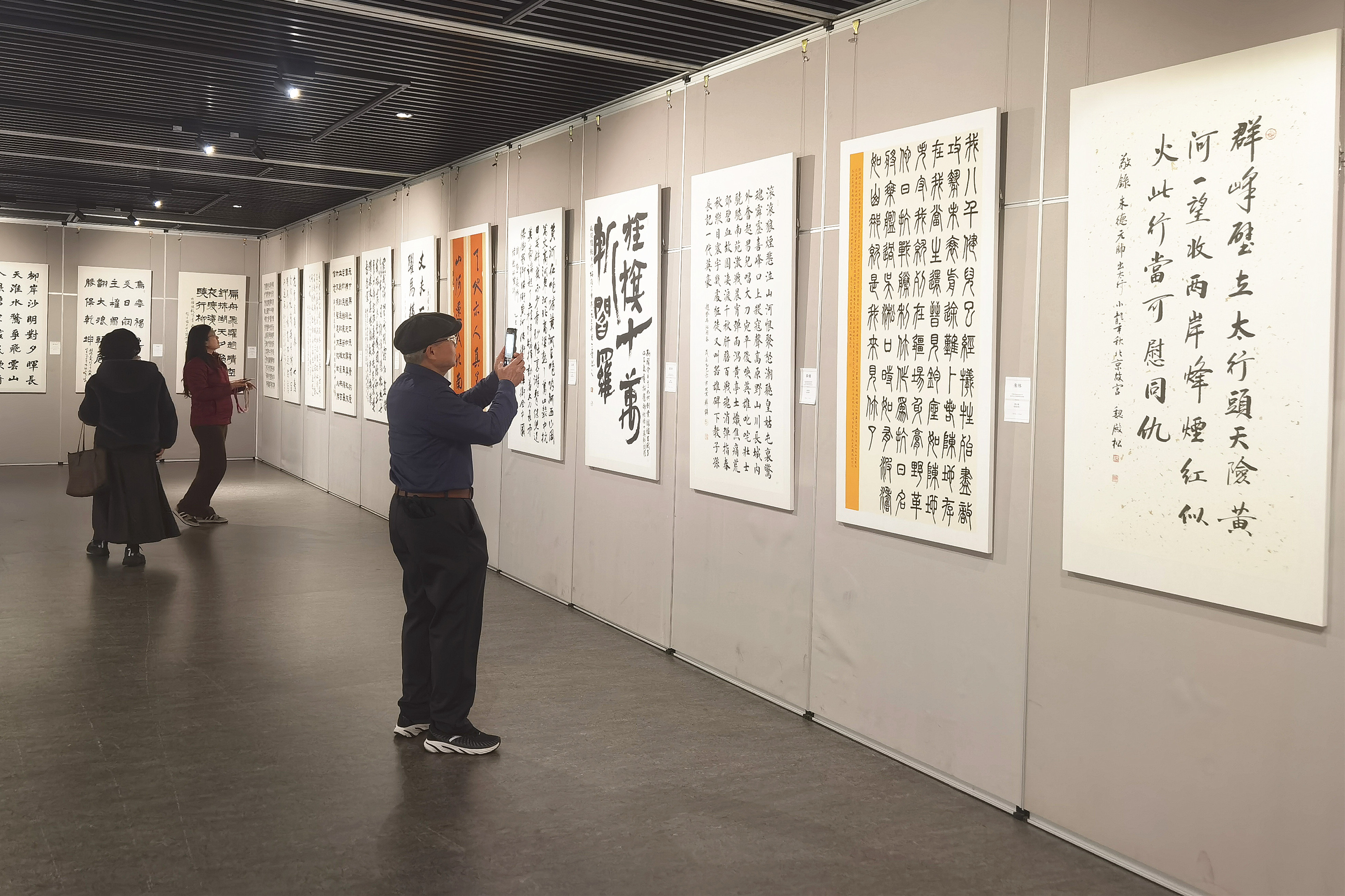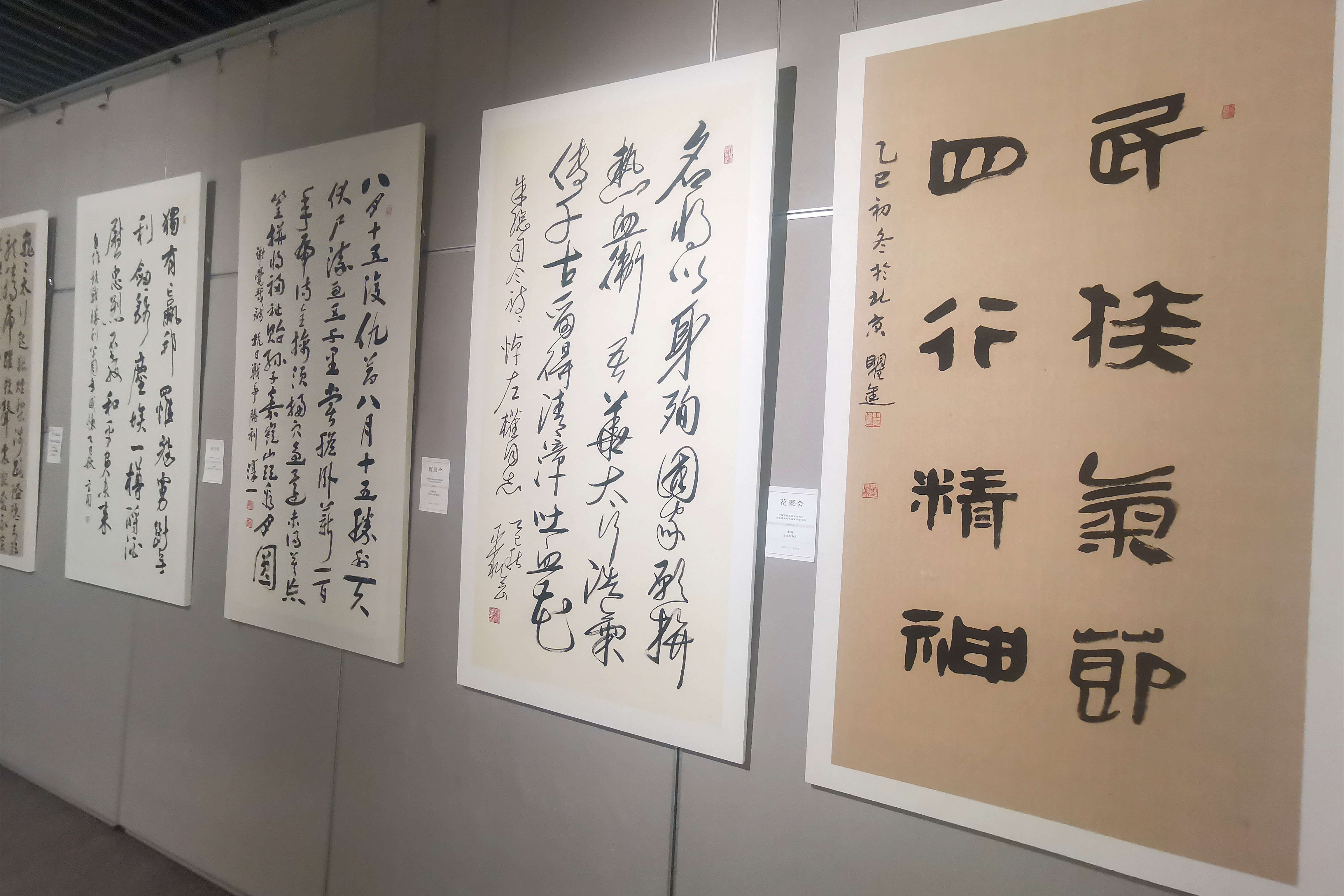 本次书法展包括“铁骨铮铮”“丹心留痕”“和平使命”三个主题板块,集中展示了从气势恢宏的榜书巨制到精致细腻的小楷小品的百余幅书法作品,涵盖楷、行、草、篆、隶等多种书体,带领观众以书法艺术为载体,重温抗战历史,弘扬民族精神,感受抗战精神的丰富内涵以及艺术家们融入笔墨之间的家国情怀。