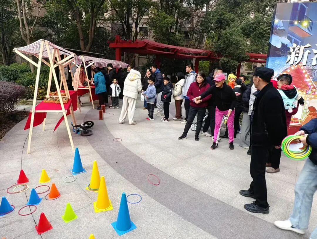 趣味游戏区热闹非凡,成了大小朋友们的欢乐天堂。套圈摊位前,大家屏息凝神,瞄准心仪好物奋力一掷;抓马游戏妙趣横生,手忙脚乱间满是笑声;拉弓射箭时,人人化身“神射手”,专注瞄准目标;锤丸、达芬奇密码考验着大家的技巧与智慧;蒙眼敲锣更是将氛围推向高潮,蒙眼摸索、精准敲打的瞬间,引得围观者阵阵喝彩。