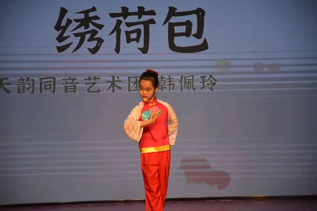 活动中,天韵公益还为优秀教师及志愿者颁发荣誉证书。目前,天韵公益有志愿者200人,2025年建立起志愿者管理团队,不仅服务内部需求,还向馨空间、前滩公园等单位输送力量。“我是小小上海人,沪语我来赛”挑战赛冠军韩佩玲带来沪剧《绣荷包》,二、三等奖获得者也登台献艺,展现少儿沪语传承的活力。古诗沪语朗诵、沪语说唱《游上海》、白领班戏歌《苏州河》等节目多元纷呈,融合传统与现代元素。戏曲班表演的越剧《红楼梦选段·元妃省亲》与天韵同音艺术团试运行的沪剧选段《家》《碧海青天夜夜心》等,则体现了非遗戏曲与沪语文化的深度结合。压轴环节,全体观众挥动红旗,共唱《我和我的祖国》。