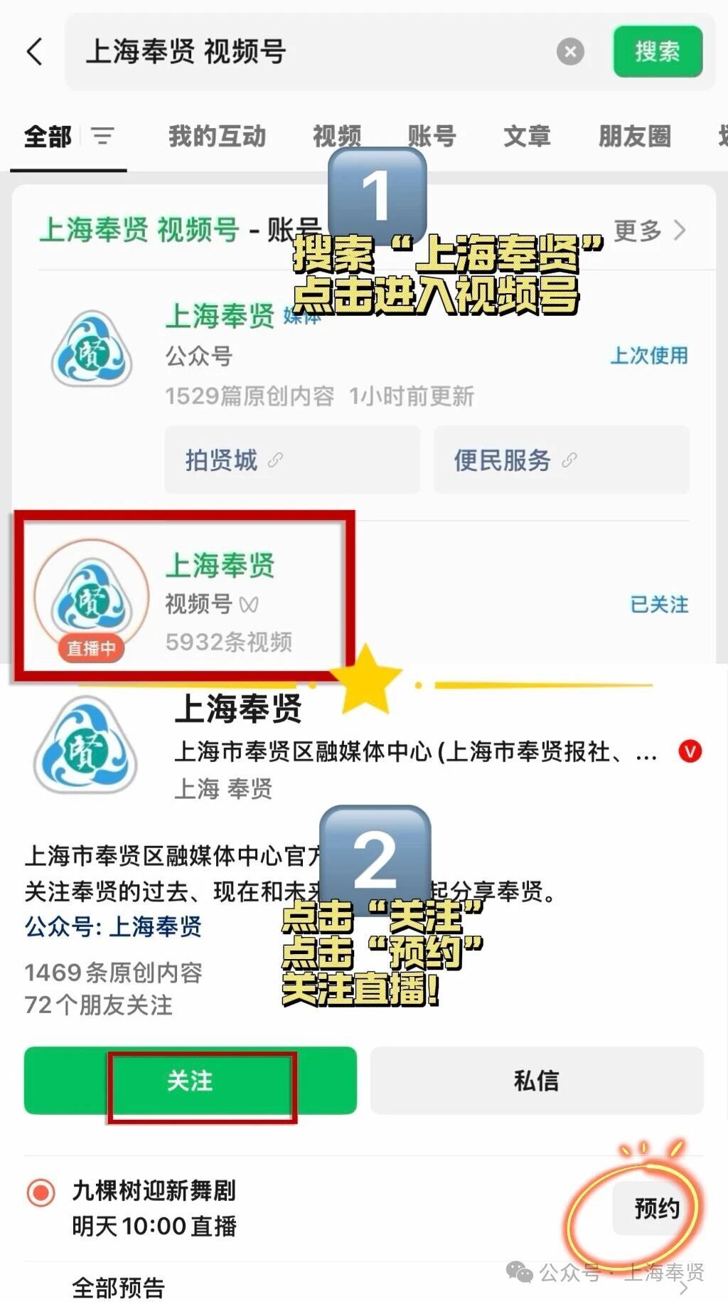 快来关注“上海奉贤”视频号,并预约直播(预约方式见图2)
