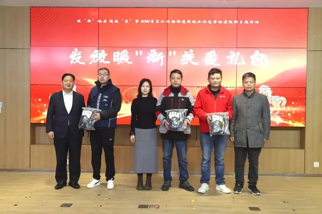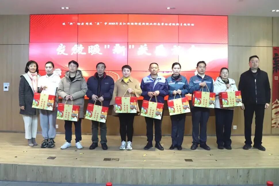 社会各界的目光始终温暖注视着这群维持城市运转的“毛细血管”。活动现场,主办方向来自京东、顺丰、盒马等快递站点的劳动者代表发放了实用的暖“新”关爱礼包,同时也为街道新就业形态工会会员代表送上了丰厚的冬日慰问礼包。