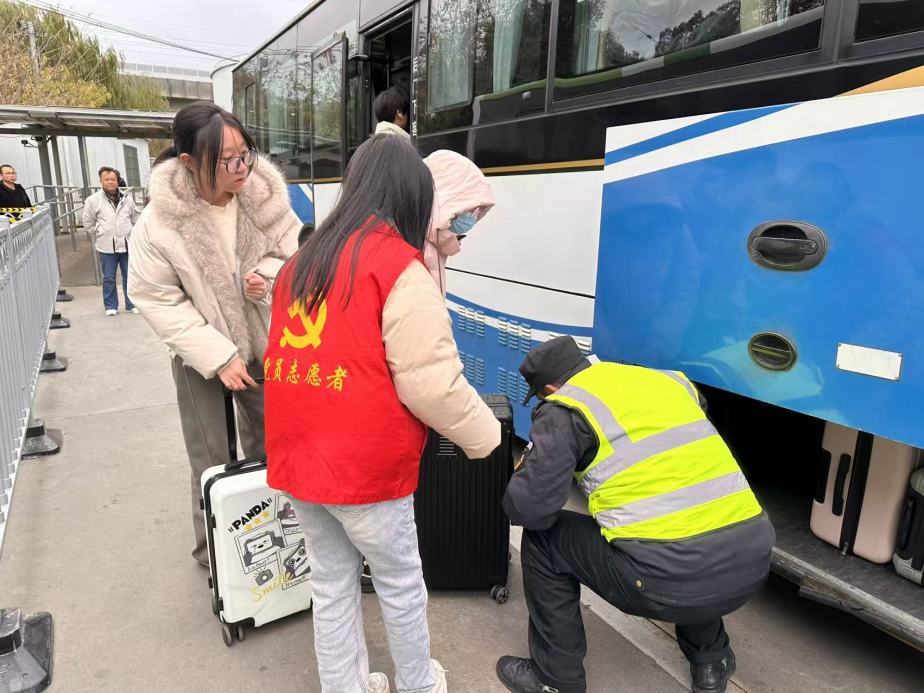 节假日期间,客流疏导与便民服务同步推进。金高公交在重要枢纽站设置观察点,安排管理人员现场驻守,通过人防与技防相结合的方式加强车辆营运动态监管;同时组建由公交“蓝马甲”青年突击队和线队组成的志愿者团队,在客流密集区域设立服务岗,提供文明乘车宣传、站点秩序维护、出行问询解答及便民物品供给等服务。