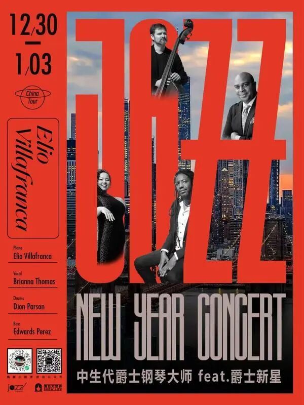 2025年12月30日至2026年1月3日,格莱美提名大师Elio领衔演出。作为融合古巴爵士、非洲加勒比音乐与现代爵士的顶尖组合,Elio Villafranca Quartet已凭借精湛技艺征服林肯中心、卡内基音乐厅、Blue Note等国际顶级舞台,被权威爵士乐杂志《Down Beat》盛赞为 “当代最具影响力的拉丁爵士四重奏之一”。而此次来华的阵容堪称豪华。
