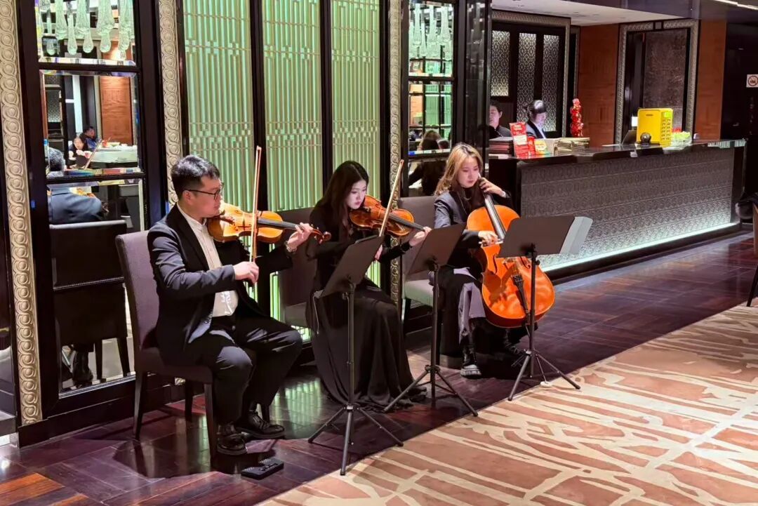 弦乐三重奏在御宝轩的雅致环境中奏响,爵士三重奏于THE CASTLE古堡餐厅点燃氛围,艺术与美食、休憩时光温柔相融,为城市更新注入温暖文化力量。