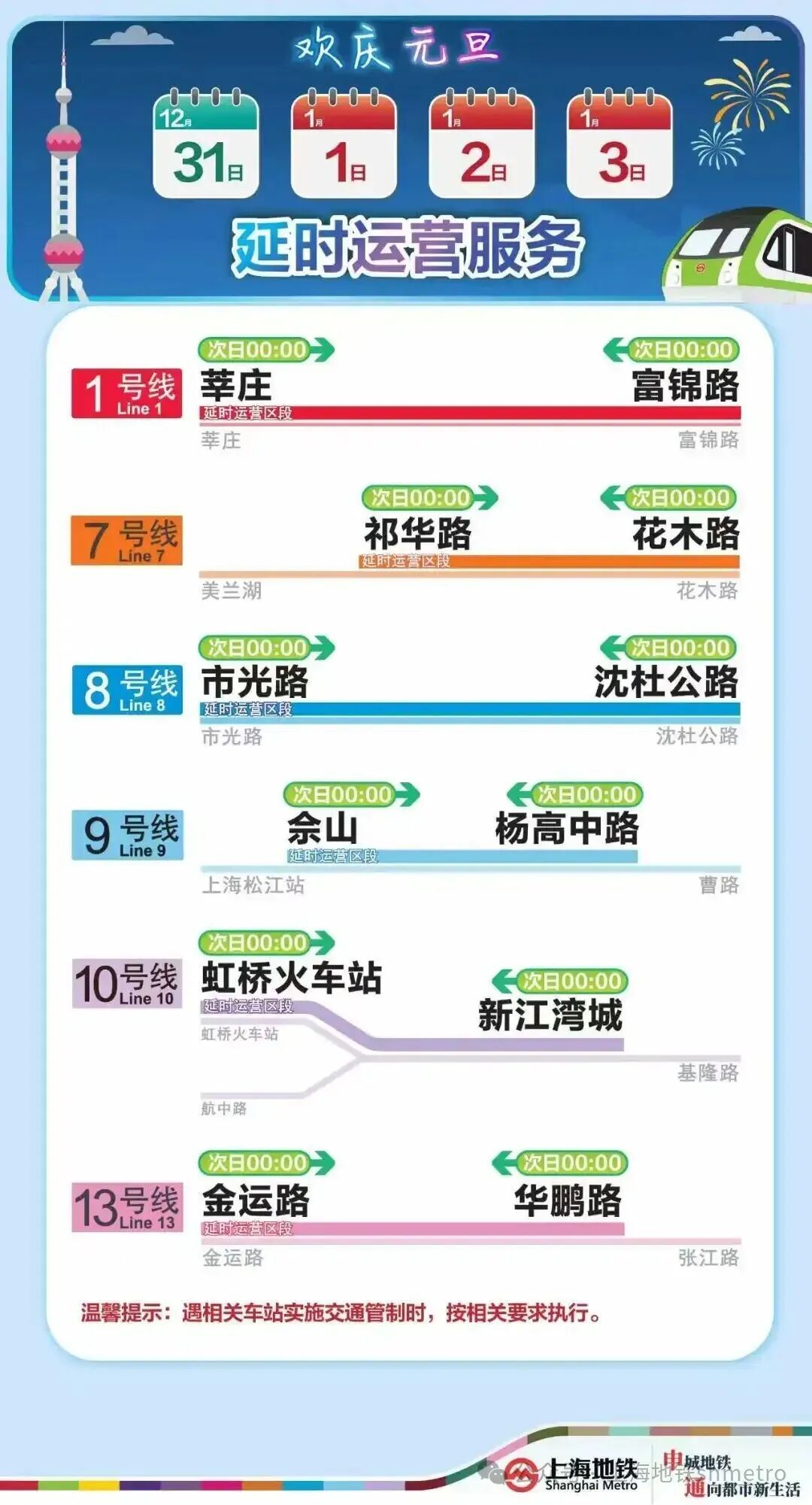 提升保驾等级 元旦3天,6线延时运营
