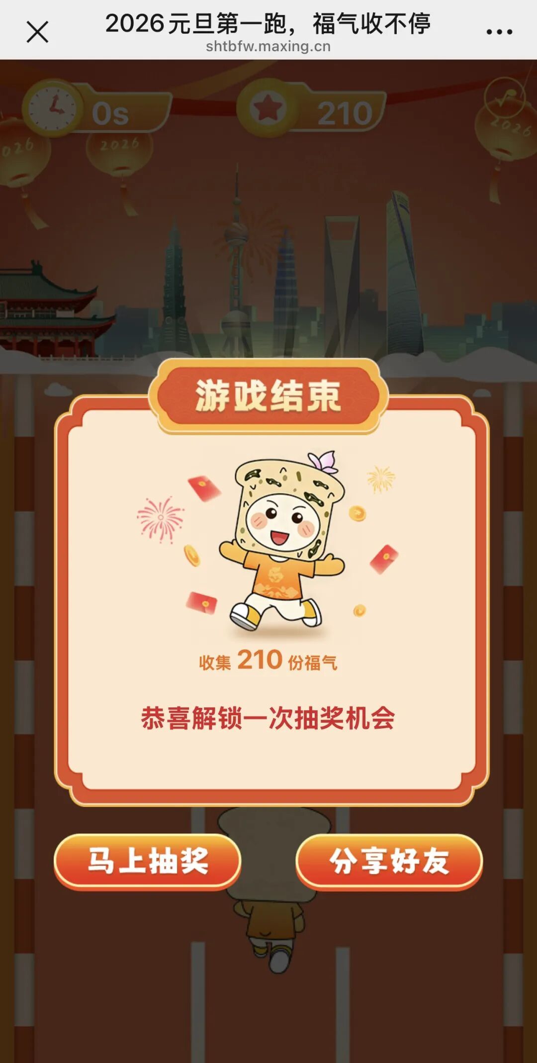 3、收集“福”、金币等加分,碰哭脸不扣分。结束生成成绩单,显示福气数与好运值,还有专属祝福。