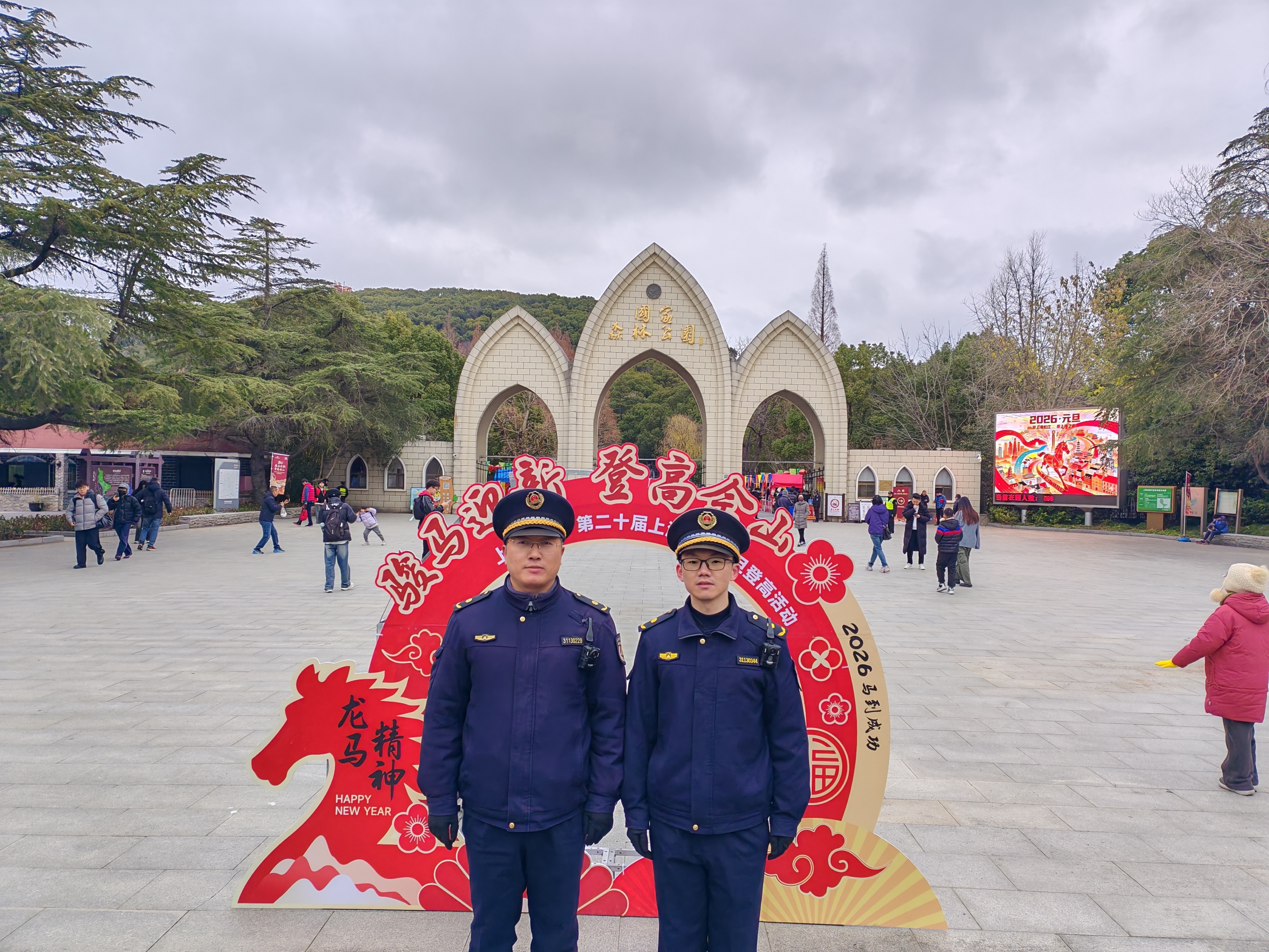 2026年1月1日清晨,佘山在薄雾中苏醒,第二十届上海佘山元旦登高活动在市民们的期盼中启动。涌动的人潮中,一抹抹“城管蓝”显得尤为醒目,来自佘山镇综合行政执法队的执法人员组成一支支保障小队,早早抵达执勤点位,提前展开工作,以实际行动守护节日平安有序。